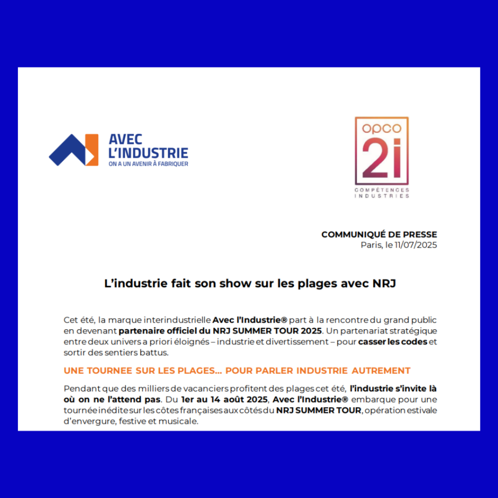 Cet été, Avec l’Industrie® s’associe au NRJ Summer Tour 2025 pour faire découvrir les métiers industriels sur les plages françaises. Animations, quiz, concerts et rencontres du 1er au 14 août dans 10 villes du littoral.